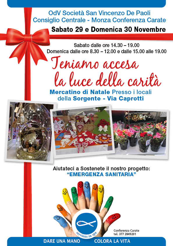 Un’occasione speciale per trovare idee regalo, vivere l’atmosfera natalizia e soprattutto sostenere il progetto “Emergenza Sanitaria” dell’OdV Società San Vincenzo De Paoli – Conferenza Carate.